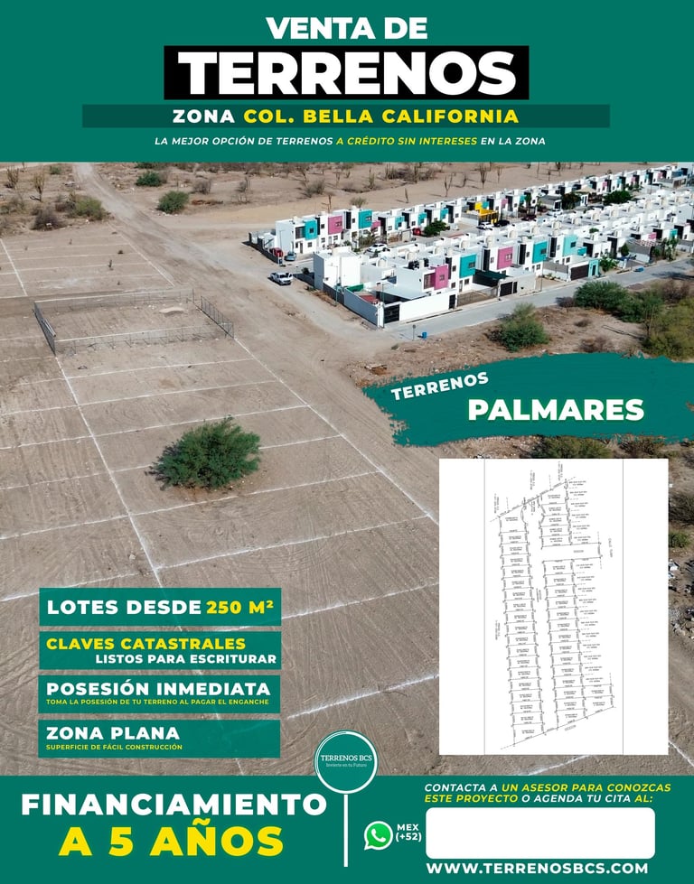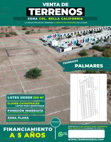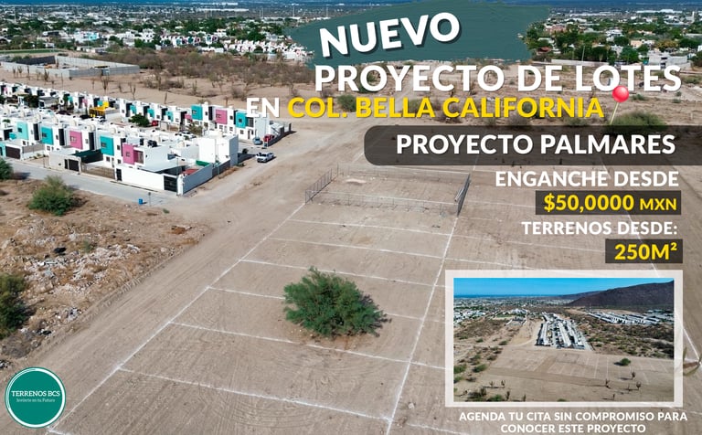 Ubicados a espaldas de la Colonia Bella California, en La Paz, B.C.S., los terrenos Los Palmares ofrecen una excelente opción de inversión con propiedad privada y servicios a pie de calle.