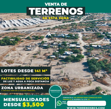 Ubicado en una zona urbanizada con gran crecimiento al este de La Paz, La Pitahaya Plus ofrece lotes residenciales desde 141 m², ideales para quienes buscan invertir, iniciar un proyecto personal o asegurar patrimonio en un área con excelente conectividad y servicios a pocos metros.