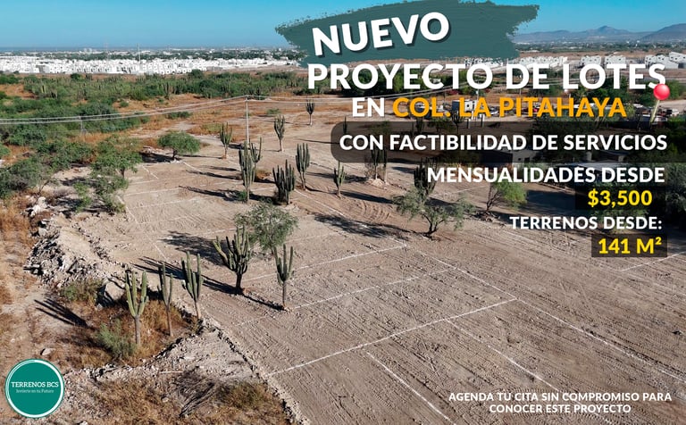 LA PITAHAYA PLUS, un desarrollo residencial con lotes ubicados en una zona urbanizada de la colonia La Pitahaya, pensado para quienes desean invertir seguro, mantenerse cerca de comercios y avenidas principales, y aprovechar el crecimiento constante de una de las zonas con mayor conectividad y proyección en La Paz.