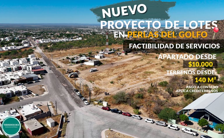 PERLAS DEL GOLFO, un desarrollo residencial con lotes estratégicamente ubicados en la zona Bella California, pensado para quienes desean invertir seguro, mantenerse cerca de servicios y aprovechar el crecimiento constante de una de las áreas con mayor demanda y plusvalía en La Paz.