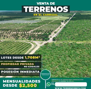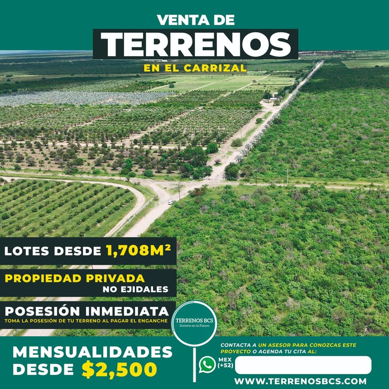 Con lotes amplios de 1,708 m², facilidades de pago y propiedad privada, son una excelente opción para quienes buscan invertir en un espacio seguro y con gran plusvalía en La Paz, B.C.S.
